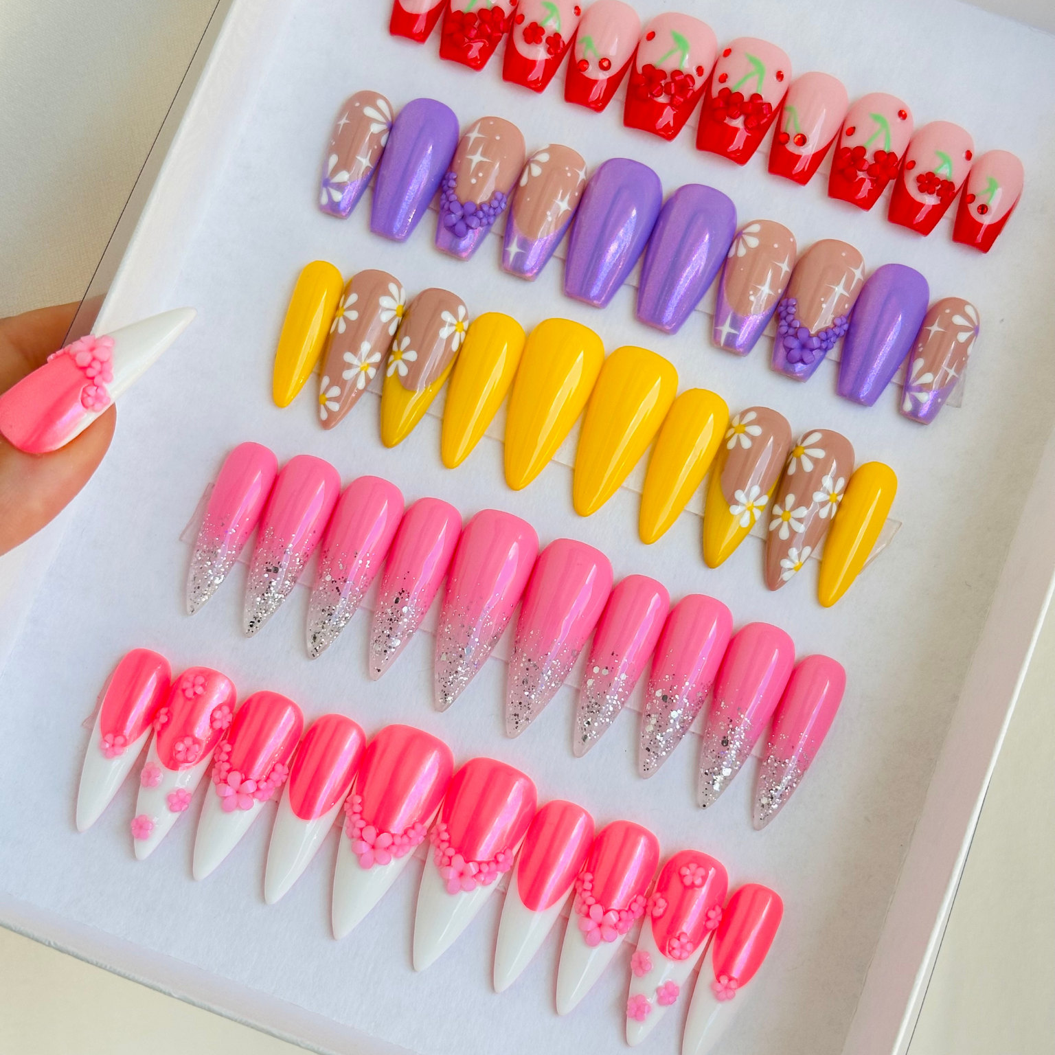 Where we turn your nail dreams into reality with our handmade, hand-painted press-on nails! Each set is lovingly crafted to bring you one-of-a-kind designs that make expressing your style a breeze. From playful pops of color to chic, elegant patterns, our nails are all about adding a touch of magic to your look—fast and fabulous. Dive into our delightful collection and discover how easy it is to have nails as unique and charming as you are!