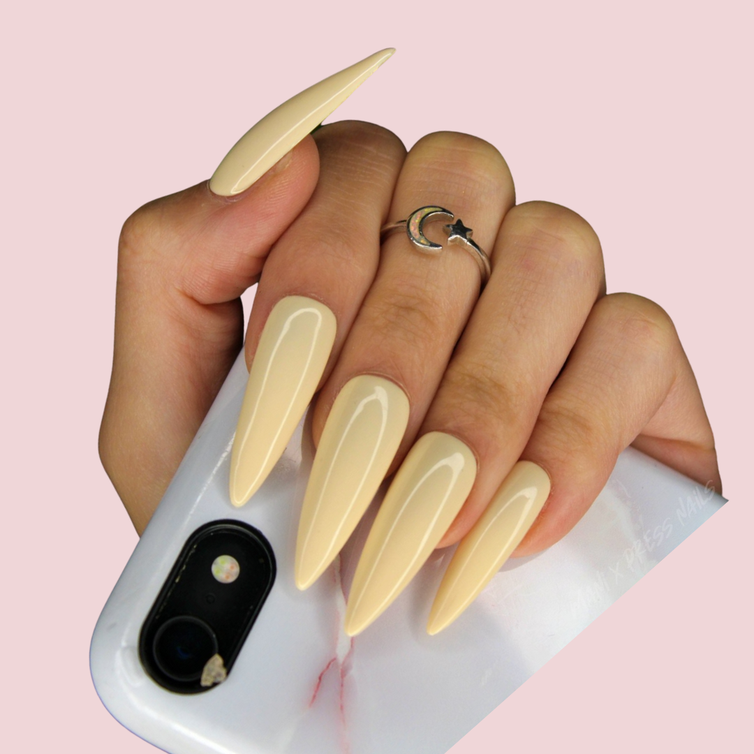 CREAMY LIGHT WARM BEIGE NUDE PRESS ON NAIL SET