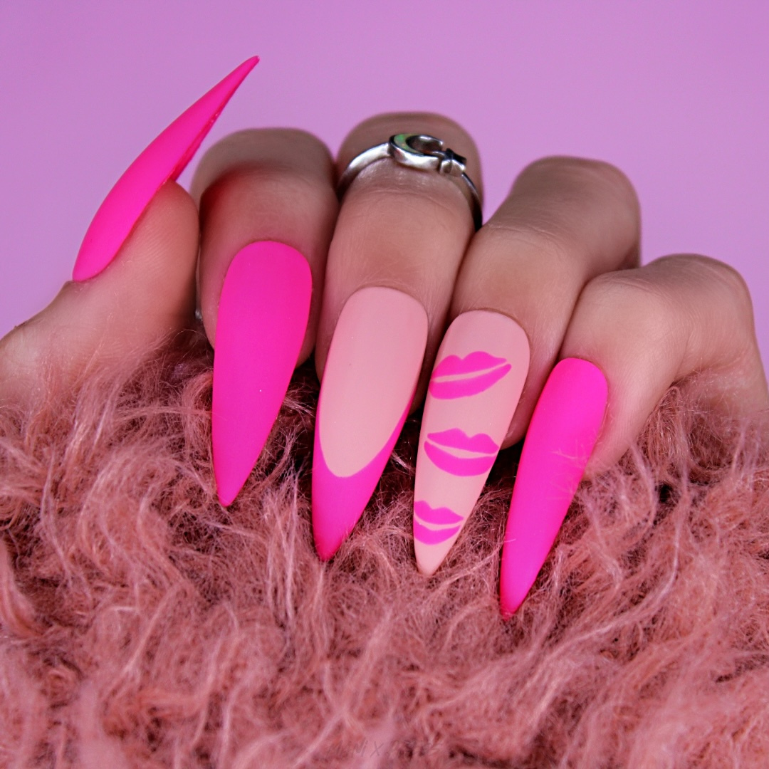 HOT PINK, NUDE AND KISSESS PRESS ON NAIL SET