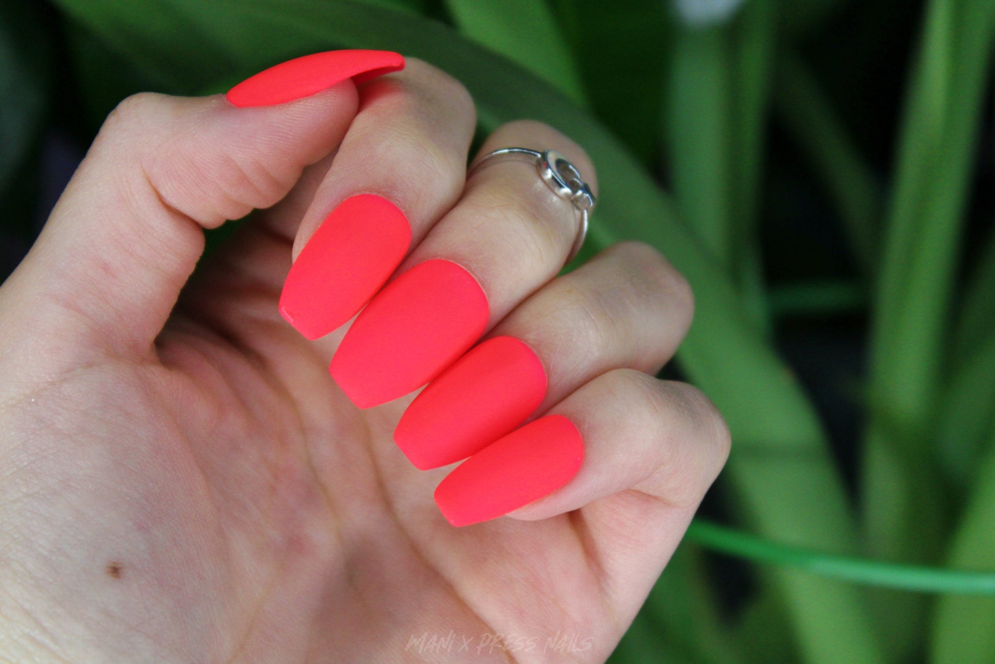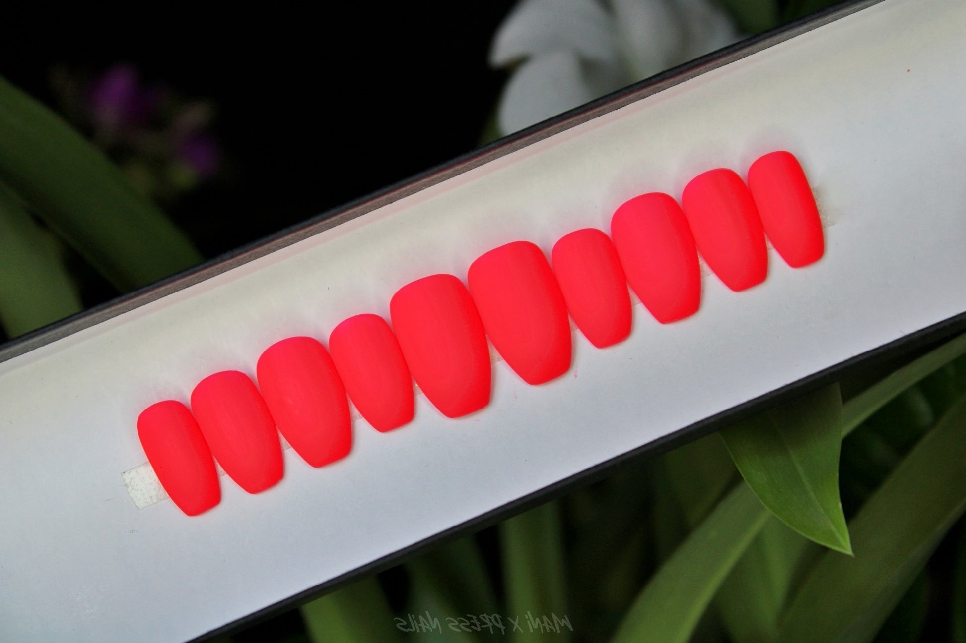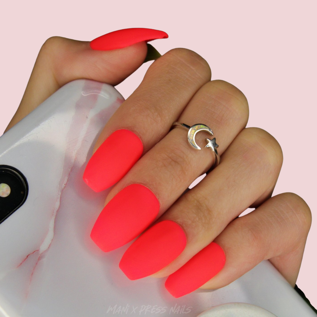 NEON RED WITH A HINT OF PINK PRESS ON NAIL SET