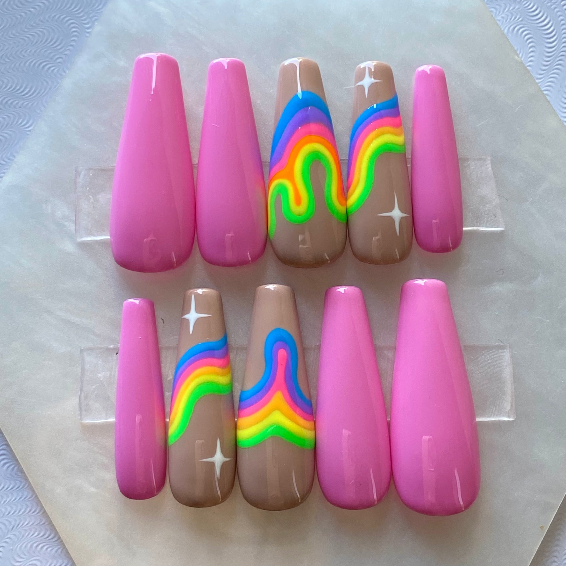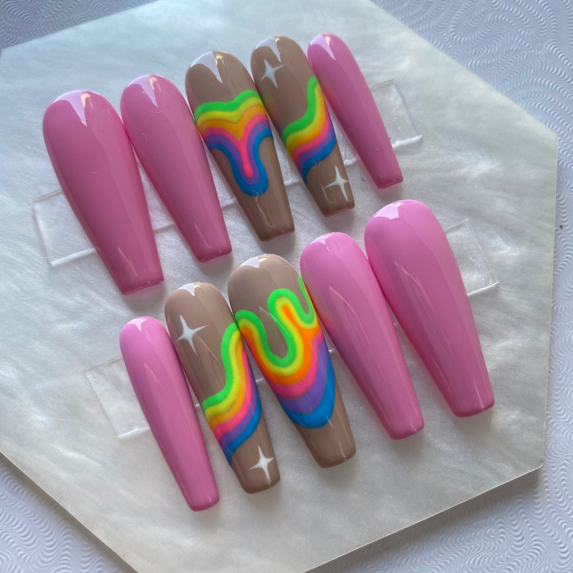 Baby pink rainbow and star press on nail set