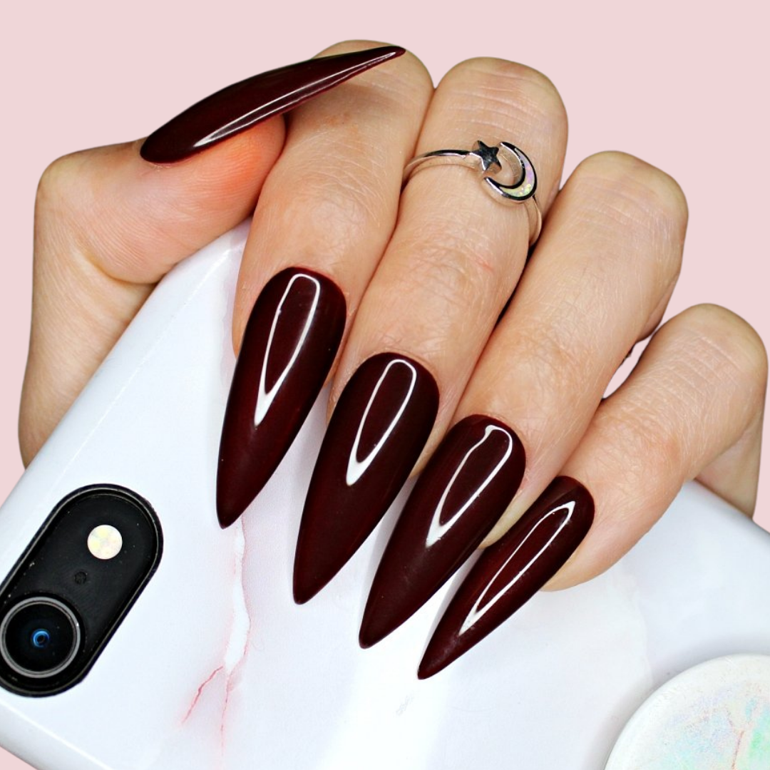 DEEP BURGUNDY PRESS ON NAIL SET